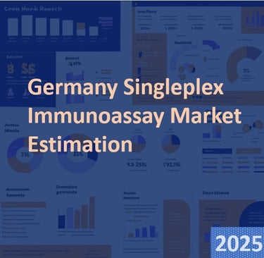 The Excel covers estimation with respect to the Germany Singleplex Immunoassay market Forecast and is Segmented by Assay Type (Protein‑Based Assays, Nucleic Acid‑Based Assays, Cell‑Based Assays, and Other Assay Types), Product and Service (Consumables, Instruments, and Other Product and Services), Application (Clinical Diagnostics, Research & Development, and Other Applications), End-user (Hospitals & Research Institutes, Pharmaceutical & Biotechnology Companies, Reference Laboratories, and Other End-users)